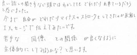 セミナーの前半では、日頃のコミュニケーションを振り返るワークをしました。